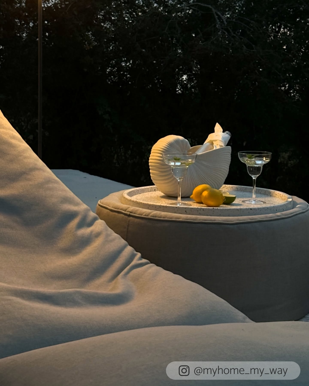 De voluminøse former bevarer en ren, skandinavisk silhuet, mens genanvendte fyldmaterialer og lavmiljøpåvirkende tekstiler mindsker aftrykket. Ansvarligt fremstillet i Europa – hvert element inviterer dig til at geare ned, slappe af og lade tiden strække sig.