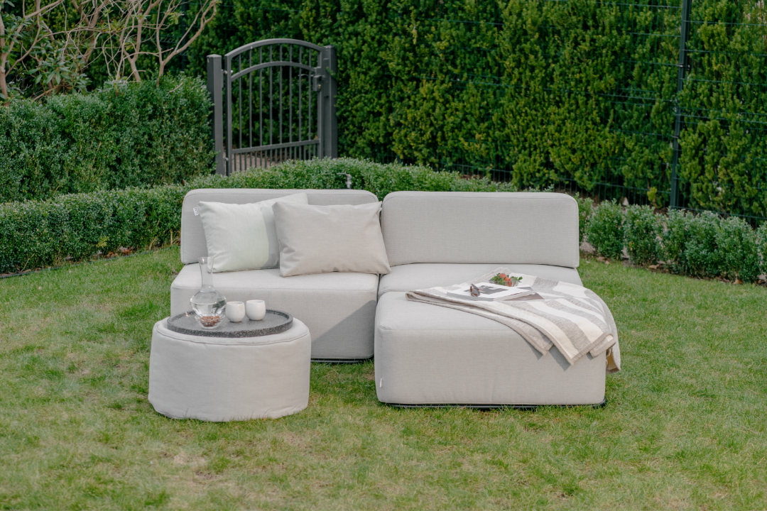 Elegant Udendørs Lounge Sofa. RAW 3-Seater Sofa er en alsidig modulær udendørs siddeløsning, der er kendt for sit rene, minimalistiske design og fleksibilitet. Perfekt til forskellige udendørs rum, tilpasser sofaen sig dine behov og giver mulighed for en komfortabel og stilfuld opsætning.